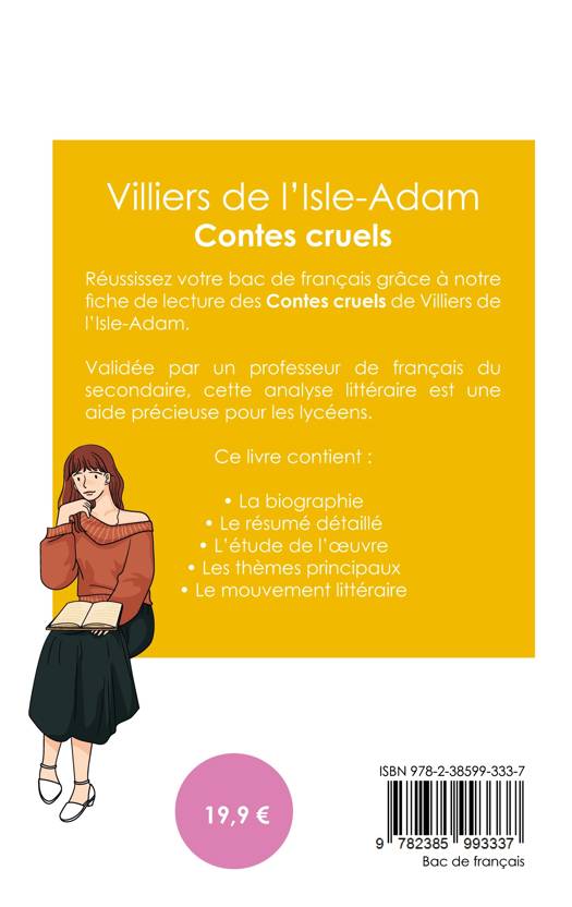 Réussissez votre bac de français 2026 grâce à notre fiche de lecture des Contes cruels de Villiers de l'Isle-Adam ! Validée par un professeur de français du secondaire, cette analyse littéraire est une aide précieuse pour tous les lycéens. Grâce à notre travail éditorial, les points suivants n'auront plus aucun secret pour vous : la biographie de l'écrivain, le résumé du livre, l'étude de l'oeuvre, l'analyse des thèmes principaux à connaître et le mouvement littéraire auquel est rattaché l'auteur.