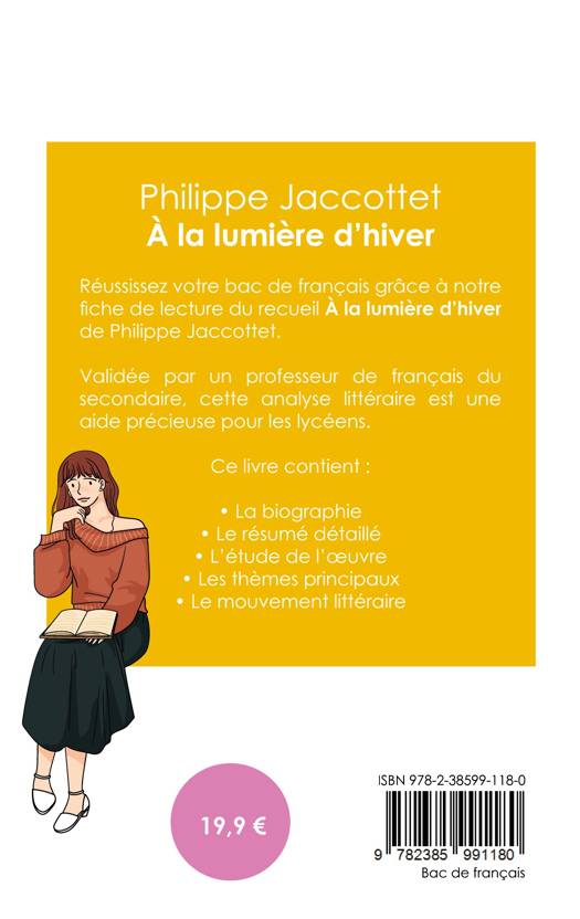 Réussissez votre bac de français 2026 grâce à notre fiche de lecture du recueil À la lumière d'hiver de Philippe Jaccottet ! Validée par un professeur de français du secondaire, cette analyse littéraire est une aide précieuse pour tous les lycéens. Grâce à notre travail éditorial, les points suivants n'auront plus aucun secret pour vous : la biographie de l'écrivain, le résumé du livre, l'étude de l'oeuvre, l'analyse des thèmes principaux à connaître et le mouvement littéraire auquel est rattaché l'auteur.