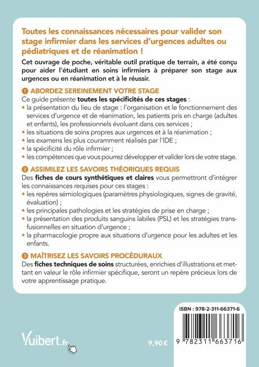 Ce guide présente toutes les spécificités du stage aux urgences-réanimation, avec un focus sur la transfusion : la description du lieu de stage ; les situations de soins propres aux urgences adultes et pédiatriques et à la réanimation ; les examens les plus couramment réalisés ; la spécificité du rôle infirmier aux urgences et en réanimation et les compétences que vous pourrez développer et valider lors de votre stage.
