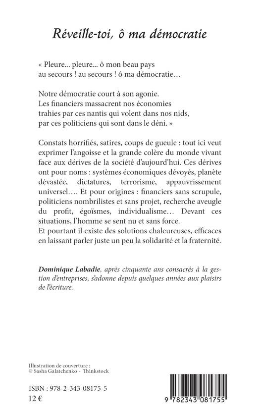 Constats horrifiés, satires, coups de gueule : tout ici veut exprimer l'angoisse et la grande colère du monde vivant face aux dérives de la société d'aujourd'hui. Ces dérives ont pour noms : systèmes économiques dévoyés, planète dévastée, dictatures, terrorisme, appauvrissement universel... Et pour origine financiers sans scrupule, politiciens nombrilistes et sans projet, recherche aveugle du profit, égoïsmes, individualisme... Devant ces situations, l'homme se sent nu et sans force. Et pourtant il existe des solutions chaleureuses, efficaces et laissant parler juste un peu la solidarité et la fraternité.