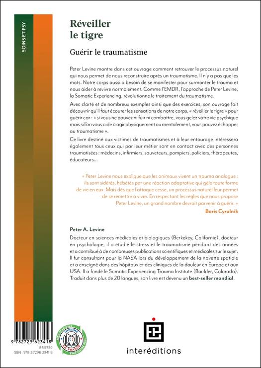 Comme l’EMDR, l’approche de Peter Levine, la Somatic Experiencing©, révolutionne le traitement du traumatisme. Avec clarté et de nombreux exemples ainsi que des exercices, son ouvrage fait découvrir qu’il faut écouter les sensations de notre corps, « réveiller le tigre » pour guérir car : « si vous ne pouvez ni fuir ni combattre, vous gelez votre vie psychique mais si l’on vous aide à agir physiquement ou mentalement, vous pouvez échapper au traumatisme ».