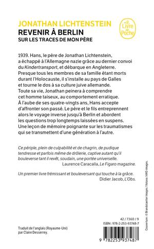 1939. Hans, le père de Jonathan Lichtenstein, a échappé à l'Allemagne nazie grâce au dernier convoi du Kindertransport, et débarque en Angleterre. Presque tous les membres de sa famille étant morts durant l'Holocauste, il s’installe au pays de Galles et tourne le dos à sa culture juive allemande. Toute sa vie, Jonathan peinera à comprendre cet homme taiseux, au comportement erratique. À l'aube de ses quatre-vingts ans, Hans accepte d'affronter son passé. Le père et le fils entreprennent alors le voyage inverse jusqu'à Berlin et abordent les questions trop longtemps laissées en suspens. Une leçon de mémoire poignante sur les traumatismes qui se transmettent d’une génération à l’autre.