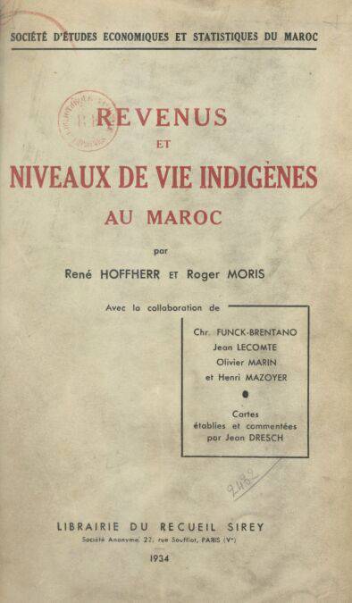 Revenus et niveaux de vie indigènes au Maroc E-BOOK