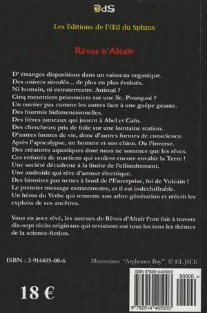 Vous en avez rêvé, les auteurs de Rêves d’Altair l’ont fait à travers dix-sept récits originaux qui revisitent sur tous les tons les thèmes de la science-fiction.