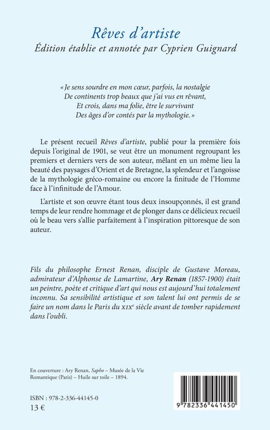 Rêves d'artiste, publié pour la première fois depuis l'original de 1901, se veut être un monument regroupant les premiers et derniers vers de son auteur, mêlant en un même lieu la beauté des paysages d'Orient et de Bretagne, la splendeur et l'angoisse de la mythologie gréco-romaine ou encore la finitude de l'Homme face à l'infinitude de l'Amour.