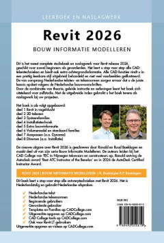 Dit is het meest complete leerboek- en naslagwerk voor Revit release 2026 voor de beginnende- en gevorderde gebruiker. Het leert u stapsgewijs alle CAD-tekentechnieken en geeft u ook extra achtergrondinformatie. Alle CAD-functies vindt u in een prettig leesbare stijl uitgebreid behandeld en met veel voorbeelden geïllustreerd. De van oorsprong Nederlandse teksten- en tekennormen zorgen ervoor dat u de juiste kennis opdoet volgens de Nederlandse bouwafspraken. Door de combinatie van theorie, geleide instructie en oefeningen leent het boek zich uitstekend voor zelfstudie. Met de uitgebreide index gebruikt u het boek tevens als naslagwerk bij uw projecten. Hiermee heeft ook de gevorderde gebruiker meteen de nieuwste mogelijkheden die Revit (BIM) biedt in beeld, bovendien staan de nieuwe technieken ook altijd apart vermeld. De aanwijzingen en tips besparen u tijd en vergemakkelijken uw werk.