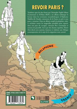 Troisième opus du duo formé par Christophe Ngalle Edimo (Cameroun) et Al'Mata (RDC), cet album embarque le lecteur dans les aventures rocambolesques d'Alphonse Madiba dit Daudet, amoureux de la France et prêt à tout pour y retourner. Dans un album rempli de péripéties, celui-ci enchaîne toutes les magouilles possibles pour repartir dans son pays de cocagne, côtoyant flics corrompus et sorciers de pacotille. Servi par des dessins superbes, Revoir Paris décrit avec justesse, humour et réalisme une Afrique contemporaine où le sujet de la migration reste central.