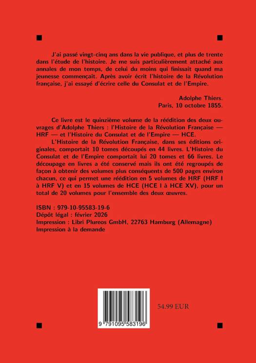 Volume XV/XX (HCE X) Ce quinzième volume conte la fin de la campagne de Russie et nous emmène jusqu'en décembre 1812.