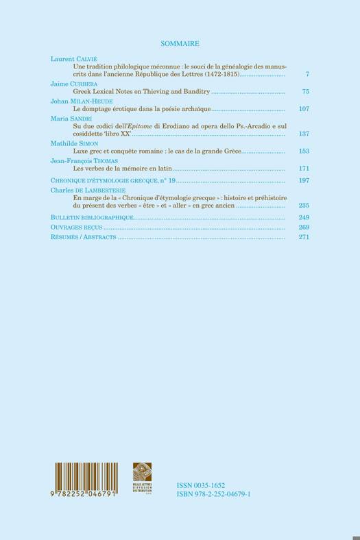 Charles DE LAMBERTERIE, En marge de la « Chronique d’étymologie grecque » : histoire et préhistoire du présent des verbes « être » et « aller » en grec ancien