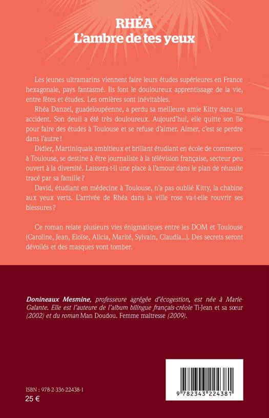 Les jeunes ultramarins viennent faire leurs études supérieures en France hexagonale, pays fantasmé. Ils font le douloureux apprentissage de la vie, entre fêtes et études. Les ornières sont inévitables.Rhéa Danzel, guadeloupéenne, a perdu sa meilleure amie Kitty dans un accident. Son deuil a été très douloureux. Aujourd’hui, elle quitte son île pour faire des études à Toulouse et se refuse d’aimer. Aimer, c’est se perdre dans l’autre !Didier, Martiniquais ambitieux et brillant étudiant en école de commerce à Toulouse, se destine à être journaliste à la télévision française, secteur peu ouvert à la diversité. Laissera-t-il une place à l’amour dans le plan de réussite tracé par sa famille ? David, étudiant en médecine à Toulouse, n’a pas oublié Kitty, la chabine aux yeux verts. L’arrivée de Rhéa dans la ville rose va-t-elle rouvrir ses blessures ? Ce roman relate plusieurs vies énigmatiques entre les DOM et Toulouse (Caroline, Jean, Eloïse, Alicia, Marité, Sylvain, Claudia...). Des secrets seront dévoilés et des masques vont tomber.