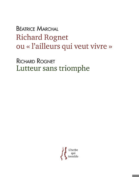 Béatrice Marchal est l'auteur de la première partie. Il n’existait pas jusqu’ici d’étude d’ensemble sur l’œuvre poétique de Richard Rognet. Ce n’est donc pas moins de vingt-cinq années de poésie, soit une quinzaine de livres, dont la présente analyse tente de dégager les lignes de force essentielles, ce qu’elles disent d’un poète en quête de son identité plurielle et de son parcours, aussi tourmenté que fécond. Les livres publiés entre 1977 et 2002 constituent une démarche nécessaire par laquelle le poète prend conscience de ce qu’il est, quand bien même il arrive à la conclusion d’une identité en constante métamorphose, cette connaissance de soi déterminant une manière spécifique d’écrire, un authentique art poétique. C’est finalement l’unité du parcours de Richard Rognet qui s’impose, il n’y a pas de solution de continuité entre ces vingt-cinq premières années de poésie et la suite, si accomplie soit-elle.