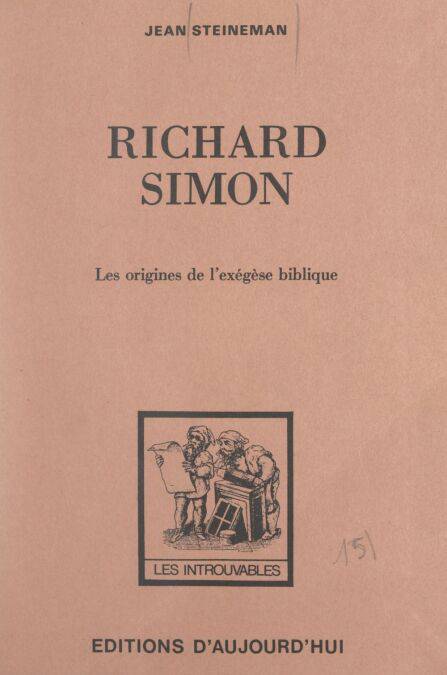 Richard Simon et les origines de l'exégèse biblique E-BOOK