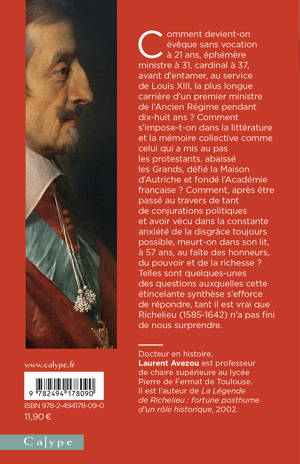 Comment devient-on évêque sans vocation à 21 ans, éphémère ministre à 31, cardinal à 37, avant d’entamer, au service de Louis XIII, la plus longue carrière d’un premier ministre de l’Ancien Régime pendant dix-huit ans ? Comment s’impose-t-on dans la littérature et la mémoire collective comme celui qui a mis au pas les protestants, abaissé les Grands, défié la Maison d’Autriche et fondé l’Académie française ? Comment, après être passé au travers de tant de conjurations politiques et avoir vécu dans la constante anxiété de la disgrâce toujours possible, meurt-on dans son lit, à 57 ans, au faîte des honneurs, du pouvoir et de la richesse ? Telles sont quelques-unes des questions auxquelles cette étincelante synthèse s’efforce de répondre, tant il est vrai que Richelieu (1585-1642) n’a pas fini de nous surprendre.