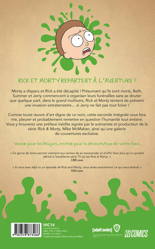 Rick Sanchez et Morty explorent à nouveau les limites du temps, de l'espace et de la morale. Le duo repart pour des aventures remplies de têtes manquantes, de terribles grille-pains galactiques et de cartels interplanétaires pendant que Jerry fait encore tout foirer. Dans cette seconde intégrale, découvrez « Ready Player Morty », une histoire dans laquelle Rick emmène Morty sur une gigantesque simulation de lycée, avant le tournoi du sport le plus dingue de l'univers : le terrible Deathball.