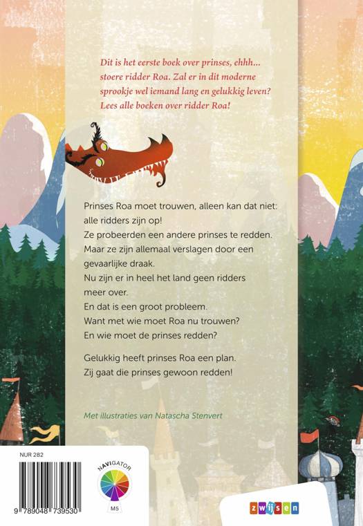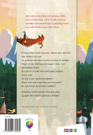 Hilarische en spannende leesserie op AVI M5 over de stoere ridder Roa. Of is het prinses Roa? In dit moderne sprookje is niets wat het lijkt. In dit eerste deel gaat prinses Roa een andere prinses redden, want alle ridders zijn op. Zal er uiteindelijk wel iemand lang en gelukkig leven? In deze serie moderne sprookjes wordt op een originele manier met liefde en genderstereotypen omgegaan. Typische rolpatronen van sprookjes worden op de hak genomen, uitvergroot of omgedraaid.