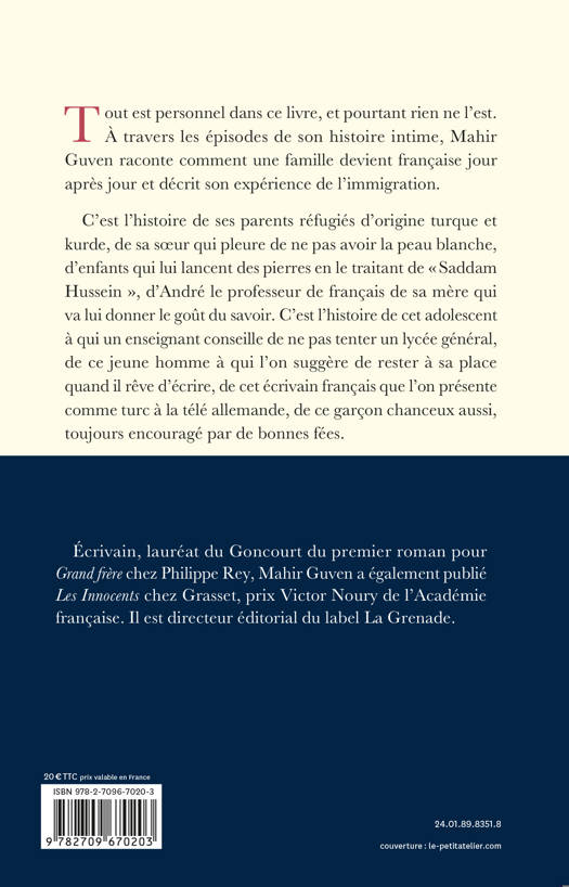 Tout est personnel dans ce livre, et pourtant rien ne l’est. À travers les épisodes de son histoire intime, Mahir Guven raconte comment une famille devient française jour après jour et décrit son expérience de l’immigration.