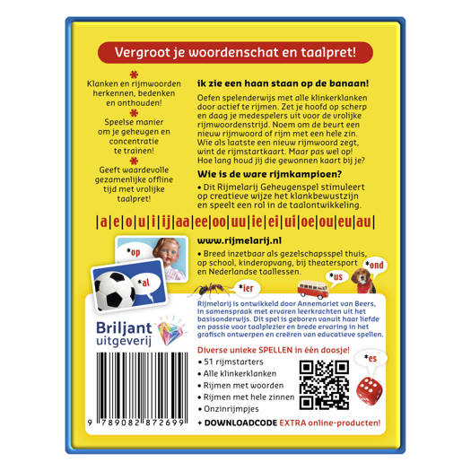 Rijmelarij is een complete kaartenset met alle klinkers en de meest gebruikelijke combinaties van dubbelklanken!