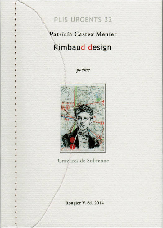 Si Rimbaud m’était conté… au XXI e siècle. On voudrait savoir les moindres détails, tels que sa tenue vestimentaire, ses lectures, ce qui sort de ses écouteurs, etc. Et justement, avec Rimbauddesign, Patricia Castex-Menier a su jouer les paparazzis pour saisir avec sa plume non seulement cette relation mère-fils mais aussi le profil de Rimbaud, les observations et les inquiétudes de la mère attentive. Elle a réussi à nous livrer des clichés de voyage, le partage d’une chanson via un baladeur (« la mère et le fils marchent ainsi, au ras des vagues. Liés aux oreillettes. Drôles de cordon. ») et capter la correspondance par SMS entre mère et fils. Le tout illustré avec la complicité du graveur Solirenne.