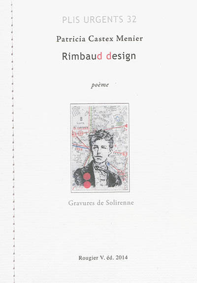 Si Rimbaud m’était conté… au XXI e siècle. On voudrait savoir les moindres détails, tels que sa tenue vestimentaire, ses lectures, ce qui sort de ses écouteurs, etc. Et justement, avec Rimbauddesign, Patricia Castex-Menier a su jouer les paparazzis pour saisir avec sa plume non seulement cette relation mère-fils mais aussi le profil de Rimbaud, les observations et les inquiétudes de la mère attentive. Elle a réussi à nous livrer des clichés de voyage, le partage d’une chanson via un baladeur (« la mère et le fils marchent ainsi, au ras des vagues. Liés aux oreillettes. Drôles de cordon. ») et capter la correspondance par SMS entre mère et fils. Le tout illustré avec la complicité du graveur Solirenne.