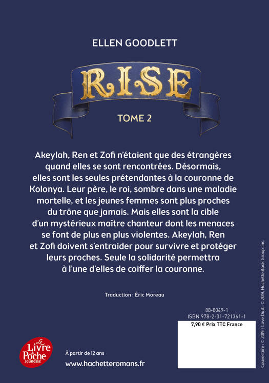 Akeylah, Ren et Zofi n’étaient que des étrangères quand elles se sont rencontrées. Désormais, elles sont les seules prétendantes à la couronne de Kolonya. Leur père, le roi, sombre dans une maladie mortelle, et les jeunes femmes sont plus proches du trône que jamais. Mais elles sont la cible d’un mystérieux maître chanteur dont les menaces se font de plus en plus violentes. Akeylah, Ren et Zofi doivent s’entraider pour survivre et protéger leurs proches. Seule la solidarité permettra à l’une d’elles de coiffer la couronne.