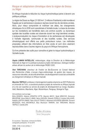 En Afrique tropicale la réduction du risque hydroclimatique peine à devenir une politique publique. La région de Dosso au Niger (31 000 km2, 2 millions d’habitants) a été inondée et frappée par la sécheresse à plusieurs reprises durant les dix dernières années. Alors, pour mieux comprendre et maîtriser ces aléas, les changements climatiques d’ici à 2030 sont caractérisés à l’échelle locale. La base de données sur les inondations est transférée dans une archive ouverte. Des services climatologiques sont offerts aux petits producteurs ruraux. Les méthodes proposées utilisent des informations en libre accès et sont donc aisément reproductibles dans d’autres régions du pays et d’Afrique francophone.