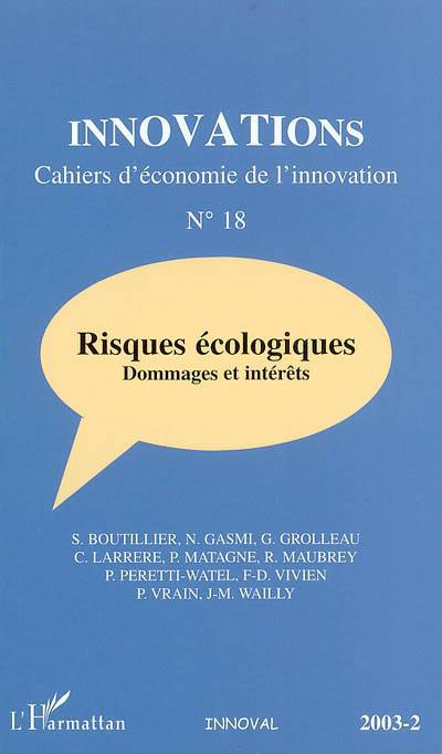 Ce numéro d'Innovations discute de certains aspects historiques et actuels du risque écologique montrant comment depuis le 18e siècle les économistes, à l'origine fervents défenseurs du principe d'exploitation à volonté de la nature, ont tièdement adhéré aujourd'hui au «principe de précaution».