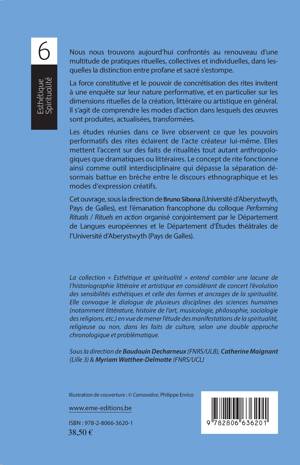 Les études réunies dans ce livre observent ce que les pouvoirs performatifs des rites éclairent de l'acte créateur lui-même. Elles mettent l'accent sur des faits de ritualités tout autant anthropologiques que dramatiques ou littéraires. Le concept de rite fonctionne ainsi comme outil interdisciplinaire qui dépasse la séparation désormais battue en brèche entre le discours ethnographique et les modes d'expression créatifs.