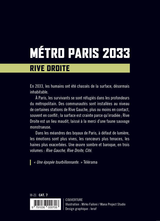 À Paris, les survivants se sont réfugiés dans les profondeurs du métropolitain. Des communautés sont installées au niveau de certaines stations de Rive Gauche, plus ou moins en contact, souvent en conflit ; la surface est crainte parce qu'irradiée ; Rive Droite est un lieu maudit, laissé à la merci d'une faune sauvage monstrueuse.