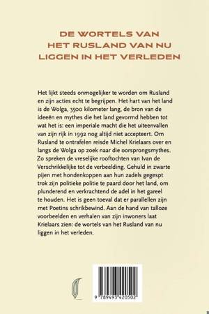 Het lijkt steeds onmogelijker te worden om Rusland en zijn acties echt te begrijpen. Het hart van het land is de Wolga, 3500 kilometer lang, de bron van de ideeën en mythes die het land gevormd hebben tot wat het is: een imperiale macht die het uiteenvallen van zijn rijk in 1992 nog altijd niet accepteert. Om Rusland te ontrafelen reisde Michel Krielaars over en langs de Wolga op zoek naar juist die oorsprongsmythes. Zo spreken de vreselijke rooftochten van Ivan de Verschrikkelijke tot de verbeelding. Gehuld in zwarte pijen met hondenkoppen aan hun zadels gegespt trok zijn politieke politie te paard door het land, om plunderend en verkrachtend de adel in het gareel te houden. Het is geen toeval dat er parallellen zijn met Poetins schrikbewind. Aan de hand van talloze voorbeelden en verhalen van zijn inwoners laat Krielaars zien: de wortels van het Rusland van nu liggen in het verleden.