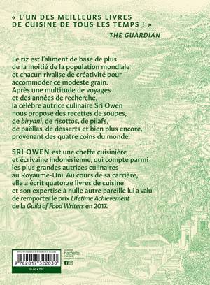 Le riz est l'aliment de base de plus de la moitié de la population mondiale et chacun rivalise de créativité pour accommoder ce modeste grain. Après une multitude de voyages et des années de recherche, la célèbre autrice culinaire Sri Owen nous propose des recettes de soupes, de biryani, de risottos, de pilafs, de paëlla, de desserts et bien plus encore, provenant des quatre coins du monde.