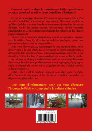 Ce carnet de voyages étonnant livre avec humour, sous la forme d'un recueil d'anecdotes, souvenirs et impressions, l'immense expérience qu'Alain Guilldou a acquise lors de ses nombreux séjours dans la capitale chinoise. Au fil des quatre saisons, l'auteur nous dévoile comment appréhender les us et coutumes surprenants des Pékinois et des Chinois plus généralement.