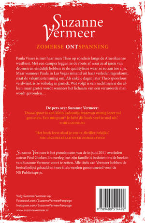 Paula Visser is met haar man Theo op rondreis langs de Amerikaanse westkust. Met een camper leggen ze de route af waar ze al jaren van dromen en eindelijk hebben ze de qualitytime waar ze zo aan toe zijn. Maar wanneer Paula in Las Vegas iemand uit haar verleden tegenkomt, slaat de vakantiestemming om. Als enkele dagen later Theo spoorloos verdwijnt, is ze volledig in paniek. Wat volgt is een nachtmerrie die alleen maar groter wordt wanneer het lichaam van een vermoorde man wordt gevonden…