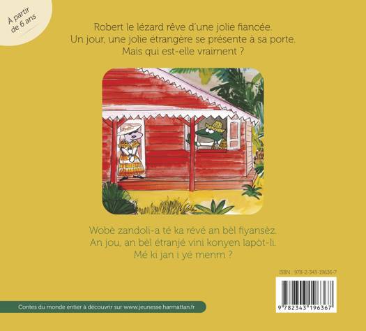 Robert le lézard rêve d'une jolie fiancée. Un jour, une jolie étrangère se présente à sa porte. Mais qui est-elle vraiment ? Album illustré en couleur, à partir de 6 ans.