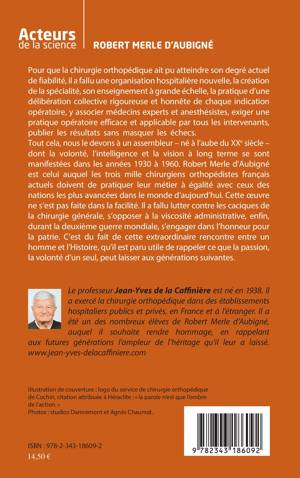 Pour que la chirurgie orthopédique ait pu atteindre son degré actuel de fiabilité, il a fallu une organisation hospitalière nouvelle, la création de la spécialité, son enseignement à grande échelle, la pratique d'une délibération collective rigoureuse et honnête de chaque indication opératoire, y associer médecins experts et anesthésistes, exiger une pratique opératoire efficace et applicable par tous, publier les résultats sans masquer les échecs. Tout cela, nous le devons à un assembleur. Robert Merle d'Aubigné est celui auquel les chirurgiens orthopédistes français actuels doivent de pratiquer aujourd'hui.