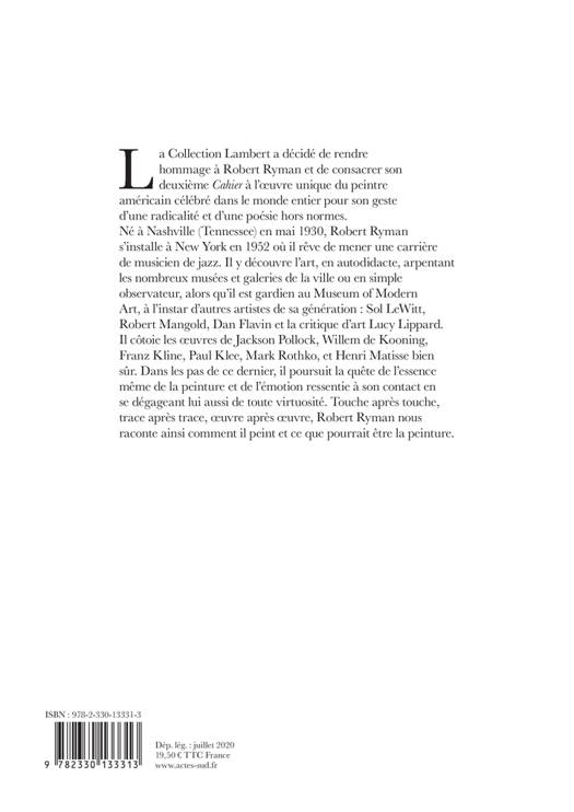 Robert Ryman est décédé le 8 février 2019. Pour lui rendre hommage, la collection Lambert a souhaité lui dédié ce deuxième opus de ses Cahier. Il permet ainsi de découvrir l'un des plus beaux fonds des oeuvres de ce peintre majeur du XXe siècle et du début du XXIe siècle, qui reste l'un des principaux représentants de la peinture minimaliste.