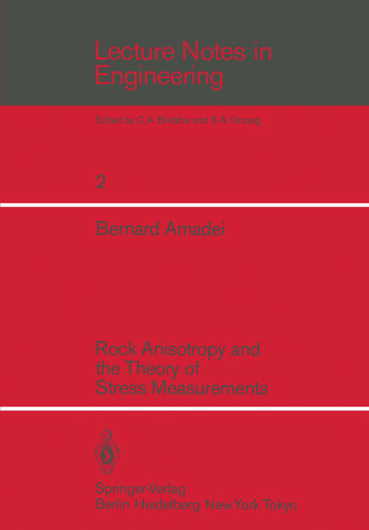 Any undisturbed rock mass is subject to natural stresses inclu- ding gravitational stresses due to the mass of the overburden and possibly tectonic stresses due to the straining of the earth's crust and remanent stresses due to past tectonism. Knowledge of the in situ stress field must be integrated into any rock engineering design along with general rock mass characteristics such as de for- mability, strength, permeability and time dependent behavior. For example, the choice of optimum orientation and shape of deep underground caverns or complex underground works will be controlled by the orientation and the magnitude of the in situ stress @ield if it is necessary to minimize stress concentration problems. Long term variation of the in situ stress field may also help to evaluate the potential hazard of earthquake occurences. The magnitude and orientation of the stress field ata point within a rock mass can be measured but there is no known method by which the state of stress at a point can be accurately determined by instruments located remotely. In general, measurements are made inside boreholes, on outcrops or on the internal surfaces of under- ground cavities. Most of the measuring techniques intentionally disturb the state of stress in the rock and then measure consequent strains and displacements. Measured strains or displacements are then related to the stresses through assumptions of material behavior. A common procedure is to assume that the rock mass is linearly elastic, isotropic, continuous and homogeneous.