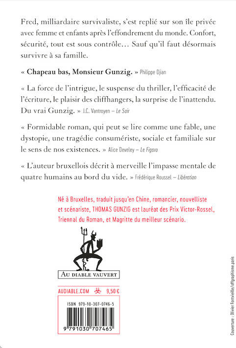 Fred, milliardaire survivaliste, s'est replié sur son île privée avec femme et enfants après l'effondrement du monde. Confort, sécurité, tout est sous contrôle... Sauf qu'il faut désormais survivre à sa famille.