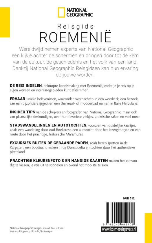 Bezoek met deze National Geographic Reisgids Roemenië hoofdstad Boekarest of de zeven regio’s Muntenië, Oltenië, Transsylvanië, Banat en Crisana, Maramures, Moldavië en Dobrogea aan de Zwarte Zee. Of kom meer te weten over verzetsstrijders, heilzaam water en de Roma.