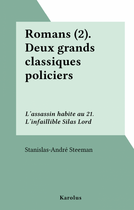 3. Romans (2).Deux grands classiques policiers : L'assassin habite au 21. L'infaillible Silas Lord