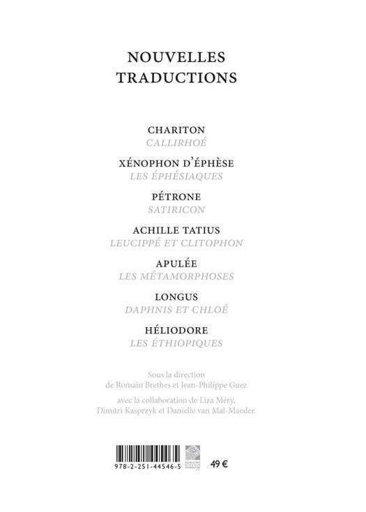 English summary: Critical edition and French translation of a series of classical Greek novels. Though perhaps not as well-known as their Latin cousins, these texts will surprise readers with their modernity, suspense, and grandeur. Copious notes, maps, and indices accompany each text. French description: Depuis 1958 et l'edition de Pierre Grimal dans la Pleiade, les romans antiques, grecs et latins, n'avaient pas fait l'objet d'une edition integrale et d'une traduction reactualisee. Ces oeuvres ont connu des fortunes durables, quoique inegales, depuis l'epoque byzantine jusqu'au XIXe siecle. Si les romans picaresques de Petrone (le Satricon) et d'Apulee (Les Metamorphoses) ont fait la joie de certains amateurs de litterature latine scandaleuse et decadente, a l'image du Des Esseintes de Huysmans ou d'un cineaste averti comme Federico Fellini, les romans grecs, qui ont pourtant etourdi et charme Rabelais ou Cervantes, n'ont jamais egale la reputation de leurs parents latins. Alors meme que le genre romanesque est devenu hegemonique aujourd'hui, cete part de l'heritage antique demeure encore meconnue. Le but de cet ouvrage est donc de rendre leur place a des oeuvres dont l'etrangete et la modernite eclateront aux yeux du lecteur, en privilegiant dans la traduction l'originalite de style et de voix de chaque auteur. Dans Callirhoe de Chariton, le lecteur pourra se delecter de la subtile peinture des sentiments qui evoque La Princesse de Cleves, avec Leucippe et Clitophon d'Achille Tatus, reconnaitre la subversion des codes romanesques annonciatrice de Diderot ou Laurence Sterne. Il pourra aussi admirer la demesure hollywoodienne des Ethiopiques, le roman fleuve d'Heliodore, qui ferait un blockbuster digne de Gladiator ou de Troie. L'ouvrage comporte egalement une preface de la philosophe et ecrivain Barbara Cassin, ainsi qu'une introduction generale, qui permet au lecteur de comprendre le contexte de creation de ces oeuvres. Chaque roman s'accompagne d'une introduction et d'une bibliographie, qui tennent compte des derniers acquis de la recherche, dans un domaine tres actif des etudes anciennes. Enfin, le tout comporte des cartes et des index, ainsi que des notes succintes pour eclairer le lecteur sur les realites du monde greco-romain.