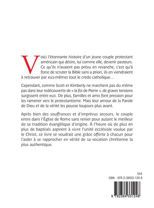 Voici l'étonnante histoire d'un jeune couple protestant américain qui décide, lui comme elle, de devenir pasteurs. Ce qu'ils n'avaient pas prévu, c'est qu'à force de scruter la Bible sans a priori, ils en viendraient à retrouver par eux-mêmes tout le credo catholique. Après bien des souffrances et d’imprévus secours, le couple des Hahn entre dans l'Église de Rome, la mère Église, sans renier le meilleur de sa tradition évangélique d'origine. C'est dire toute l'importance oecuménique d'un tel témoignage.