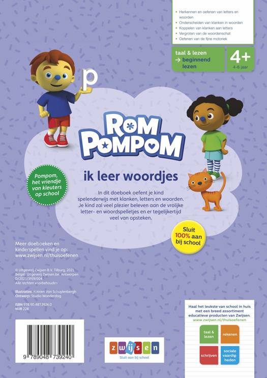 Leerdoelen: - Herkennen en oefenen van letters en woorden - Onderscheiden van klanken in woorden - Koppelen van klanken aan letters - Vergroten van de woordenschat - Oefenen van de fijne motoriek