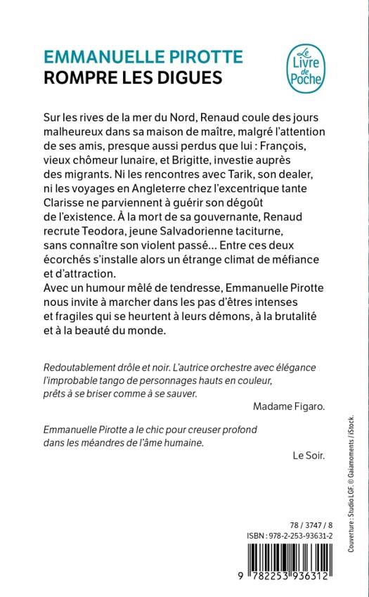 Sur les rives de la mer du Nord, Renaud coule des jours malheureux dans sa maison de maître, malgré l’attention de ses amis, presque aussi perdus que lui : François, vieux chômeur lunaire, et Brigitte, investie auprès des migrants. Ni les rencontres avec Tarik, son dealer, ni les voyages en Angleterre chez l’excentrique tante Clarisse ne viennent guérir son dégoût de l’existence. À la mort de sa vieille gouvernante, Renaud recrute Teodora, jeune Salvadorienne taciturne, sans connaître son violent passé… Entre ces deux écorchés s’installe alors un étrange climat de méfiance et d’attraction. Avec un humour mêlé de tendresse, Emmanuelle Pirotte nous invite à marcher dans les pas de personnages intenses et fragiles qui se heurtent à leurs démons, à la violence et à la beauté du monde.