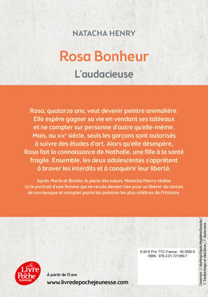Rosa, 14 ans, veut vivre de sa passion : la peinture animalière. Le mariage ne rentre pas dans ses plans, d’autant que c’est pour Nathalie, la fille d’amis de son père, que son cœur bat. Mais dans le Paris du XIXe siècle, les femmes ne sont pas libres. Certaines formations, comme les Beaux-Arts, leur sont interdites. Certains lieux sont dangereux si elles s’y rendent seules. Quant à vivre libre ? Ce serait le scandale assuré ! Malgré son jeune âge, Rosa compte bien imposer ses choix. Aidée de son père et de Nathalie, elle prend des cours de peinture et se rend au Louvre pour s’inspirer des plus célèbres tableaux de l’Histoire ! Rosa n’accepte aucun compromis. Entrer dans le monde de l’art, pour elle, c’est s’affranchir de la loi des hommes.