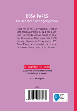 Rosa naît en 1913 en Alabama. C'est un État ségrégationniste du sud des États-Unis ; un monde étrange, coupé en deux. Les Blancs et les Noirs vivent côte à côte sans se mélanger. Le 1er décembre 1955, Rosa Parks, à sa manière, dit non au racisme et lutte pour les droits civiques.