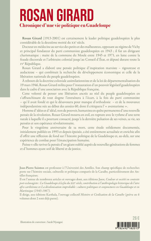 Rosan Girard est le leader politique guadeloupéen le plus considérable de la deuxième moitié du 20e siècle. À rebours de la loi de départementalisation de 1946, Rosan Girard militait pour l’instauration d’un pouvoir législatif local, mais dans le cadre d’une association avec la République française. Cette volonté de penser une libération ancrée au réel du peuple guadeloupéen en s’affranchissant de tout dogme l’entraînera à l’écart, à la fois du parti communiste et de la mouvance indépendantiste née au début des années 60. Homme d’idées et d’idéal, non de pouvoir, Rosan Girard mourra en exil, en rupture avec le rythme d’une terre natale à laquelle il a pourtant consacré sa vie, ses pensées et son espérance révolutionnaire. Pour le 20e anniversaire de sa mort, cette étude, initialement publiée en 1993 et depuis épuisée, a été entièrement actualisée et enrichie afin d’offrir une réflexion de fond sur l’histoire politique de la Guadeloupe, cette si vieille colonie de la France.