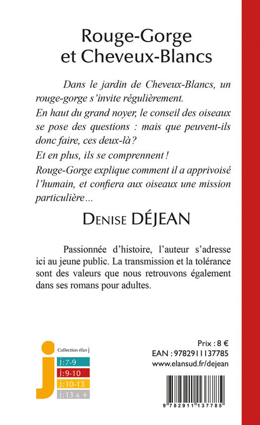 Dans le jardin de Cheveux-Blancs, un rouge-gorge s’invite régulièrement. En haut du grand noyer, le conseil des oiseaux se pose des questions : mais que peuvent-ils donc faire, ces deux-là ? Et en plus, ils se comprennent ! Rouge-Gorge explique comment il a apprivoisé l’humain, et confiera aux oiseaux une mission particulière…