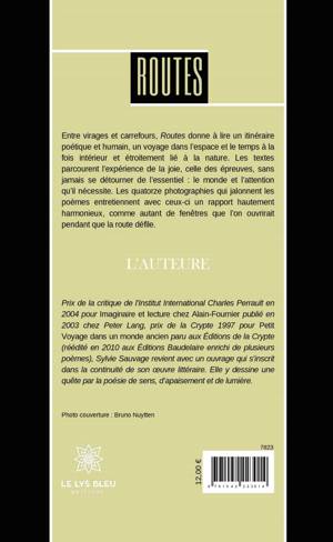 Entre virages et carrefours, Routes donne à lire un itinéraire poétique et humain, un voyage dans l'espace et le temps à la fois intérieur et étroitement lié à la nature. Les textes parcourent l'expérience de la joie, celle des épreuves, sans jamais se détourner de l'essentiel : le monde et l'attention qu'il nécessite. Les quatorze photographies qui jalonnent les poèmes entretiennent avec ceux-ci un rapport hautement harmonieux, comme autant de fenêtres que l'on ouvrirait pendant que la route défile.