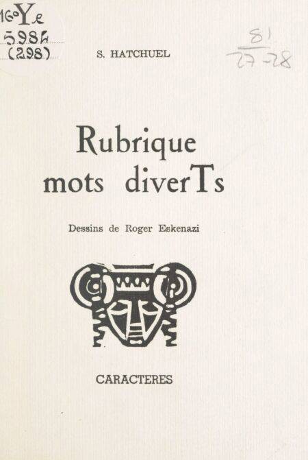 S. Hatchuel : Né à Fez (Maroc) en 1945. Paris 1961 : ENIO. 1969 : prépare doctorat Lettres (Éluard et le surréalisme). Enseigne à l’étranger de 1970 à 1978 (Ghana, Mexique, Niger). Actuellement classes de jeunes non-francophones à Paris 19e.