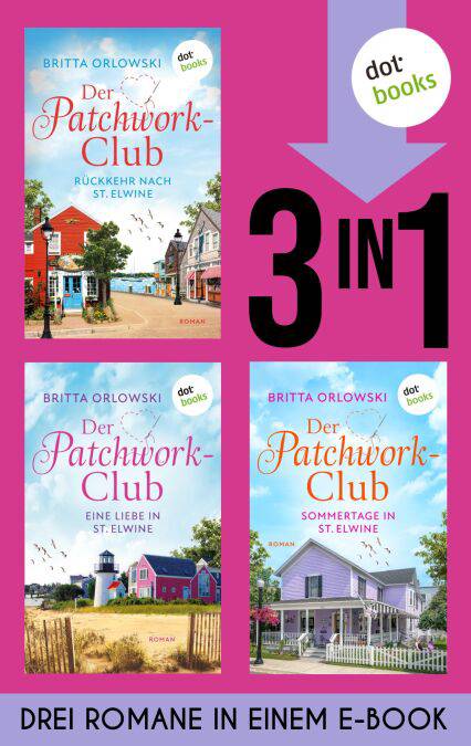 RÜCKKEHR NACH ST. ELWINE: Ein emotionales Wiedersehen ... Die junge Liz Crane kehrt als Ärztin zurück in ihre Heimat, das beschauliche St. Elwine, mit dem sie so viele liebevolle und schmerzliche Erinnerungen verbindet. Hier nimmt ihre Freundin Rachel sie sogleich auf in den örtlichen Patchworktreff, dessen herzliche Mitglieder ihr immer mit Rat und Tat zur Seite stehen – auch als sie ihrer Jugendliebe wieder begegnet, Joshua Tanner, der genau wie sie schon oft von der Liebe enttäuscht wurde. Nie hätte Liz gedacht, dass die Gefühle von damals erneut aufflammen könnten ... gibt es etwa noch eine Chance für die beiden? EINE LIEBE IN ST. ELWINE: Niemals konnte Charlotte sich damit abfinden, dass ihre Mutter ihr den Kontakt zum Großvater verbot. Als sie viele Jahre später ein Brief von ihm erreicht, ist sie so berührt, dass sie beschließt, seine Zahnarztpraxis im kleinen St. Elwine zu übernehmen. Hier trifft sie auf den attraktiven Rockstar Tyler, der gerade für eine Auszeit in die Heimat zurückgekehrt ist – und obwohl ihre erste Begegnung alles andere als rosig verläuft, muss sie sich nach einer Weile doch eingestehen, dass es zwischen ihnen knistert. Zum Glück sind ihre neuen Freundinnen im örtlichen Patchworktreff nie um einen Rat verlegen. Und so nimmt Charlotte ihren Mut zusammen und lässt sich auf Tyler ein ... aber ist er wirklich bereit für die Liebe? SOMMERTAGE IN ST. ELWINE: Ein Neuanfang in St. Elwine ... Von ihrem Exmann im Stich gelassen, zog Floriane, genannt Flo, mit ihrem Sohn Kevin in das beschauliche St. Elwine. Einige Jahre später ist sie gut vernetzt mit den Frauen im örtlichen Patchworktreff und ihr bester Freund Marc steht ihr immer mit Rat und Tat zur Seite. Doch das Geld ist jeden Monat knapp und noch immer bringt sie es nicht übers Herz, ihrer Familie im fernen Havelland zu sagen, dass sie ganz auf sich allein gestellt ist ... Da passiert ein Unglück, das einen noch viel größeren Schatten wirft: Marc wird bei einem Unfall schwer verletzt, gerade als sein Vater aus dem Gefängnis zurückkehrt, um Unfrieden zu stiften! Kann Flo ihm helfen, diese schwere Zeit durchzustehen – ohne den Kopf zu verlieren und sich in ihren besten Freund zu verlieben?